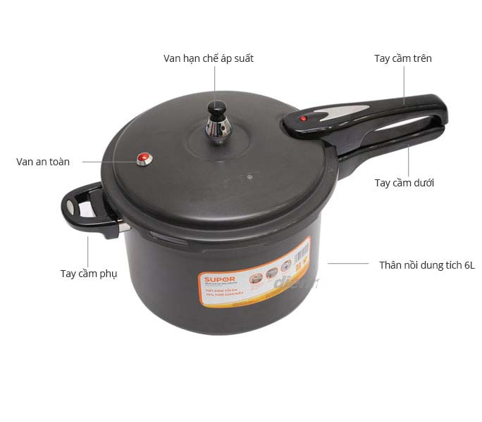 Nồi áp suất gas Supor YL223FC có dung tích lớn 6 lít, giúp bạn có thể nấu được lượng lớn thức ăn cho một gia đình 6- 8 người