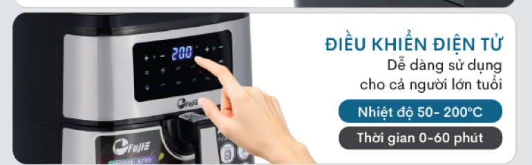 Bạn có thể dễ dàng chế biến được các món ăn đầy đủ dinh dưỡng cho gia đình: khoai tây, nướng thịt, nướng cá, nướng tôm, nướng pizza, nướng đùi gà, nướng bánh, nướng gà quay nguyên con, sấy hoa quả, rã đông thực phẩm. Bạn chỉ cần quét một lượng dầu nhỏ lên thực phẩm và lựa chọn nhiệt độ, ấn hẹn giờ (1-60 phút) và nhiệt độ