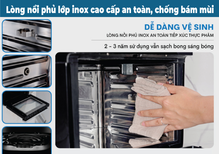 Lòng nồi phủ lớp inox cao cấp an toàn