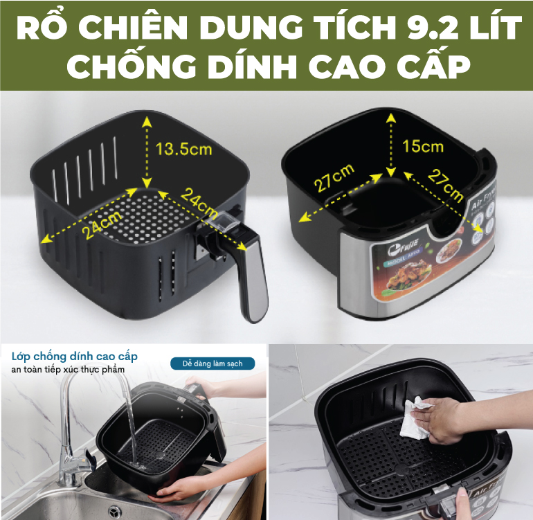 Rổ chiên dung tích 9.2 lít được phủ lớp chống dính cao cấp