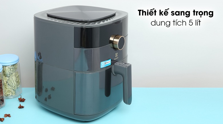 Nồi chiên không dầu Electrolux 5 lít E6AF1-520K thiết kế hình trụ vuông bo tròn góc cứng cáp. Nồi chiên sử dụng nhựa PP chất lượng cao màu đen xám sáng bóng dễ bài trí không gian. Dung tích thực lòng nồi tới 5Lthoải mái chiên nướng thực phẩm như gà, cá, sườn, thịt trong một lần nướng.