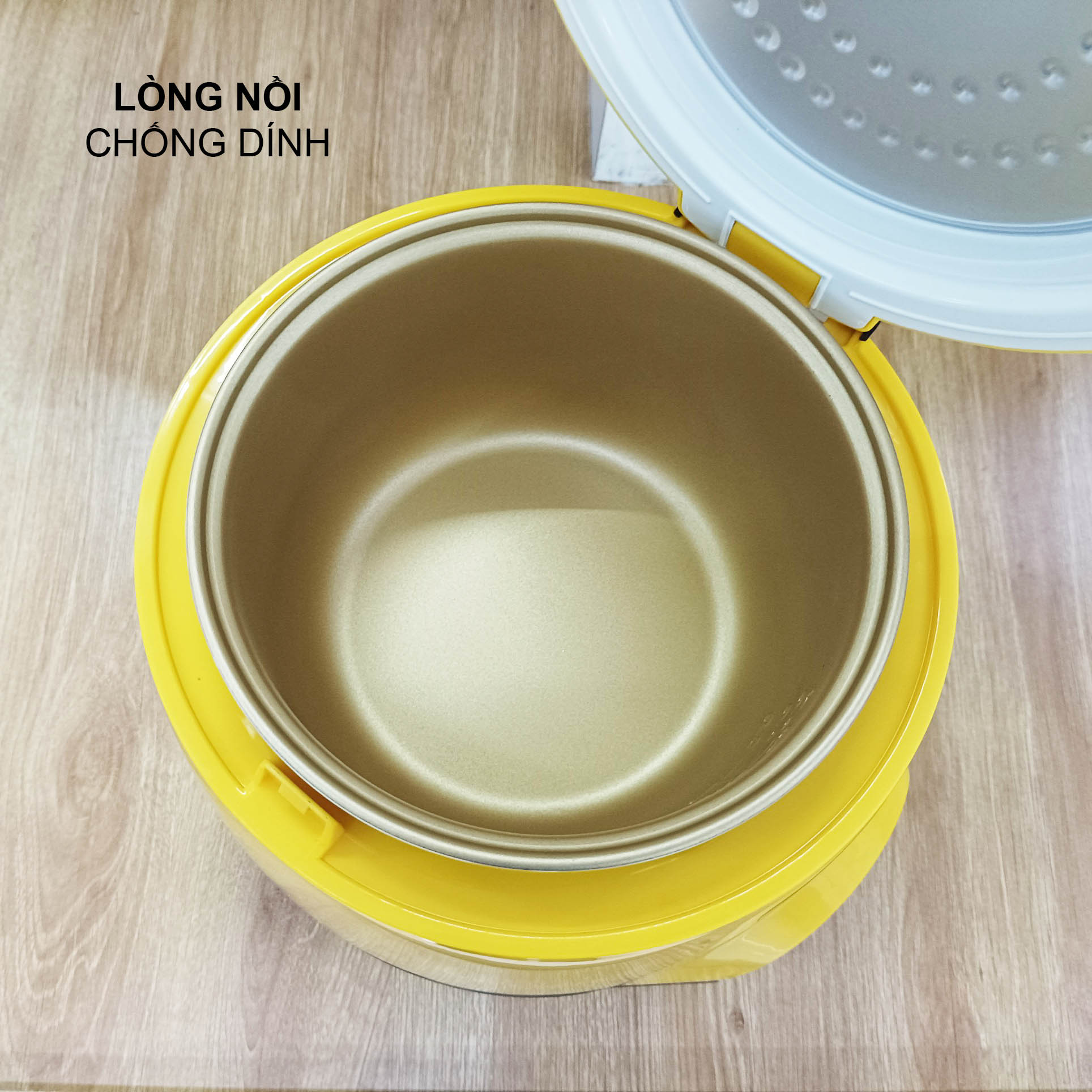 Lòng nồi được làm từ chất liệu chống dính, giúp cơm không bám dính và dễ dàng làm sạch sau mỗi lần sử dụng. Điều này làm tăng tính tiện lợi và giảm bớt công đoạn chùi rửa, giúp bạn tiết kiệm thời gian và công sức.