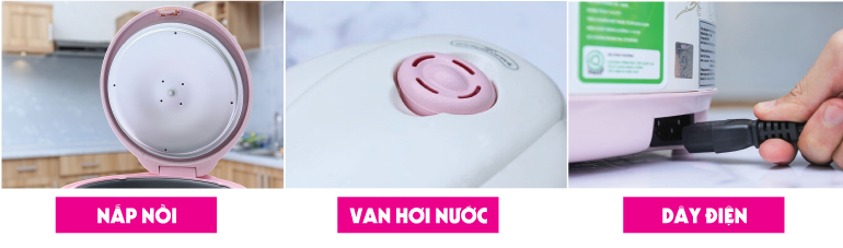 Thiết kế thông minh với nắp nồi trơn, dây diện và van hơi tháo rời.