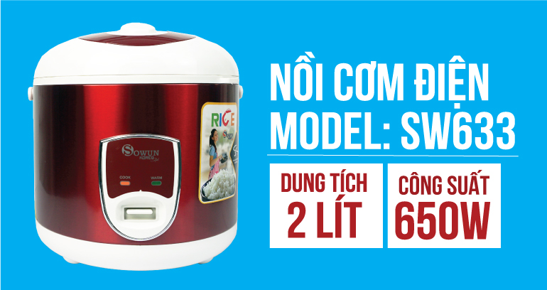 - Nồi cơm điện Sowun SW633 được thiết kế với quai xách vô cùng tiện lợi, chắc chắn, tiện dụng có khả năng chịu lực lên đến 20kg, giúp bạn có thể di chuyển 1 cách dễ dàng mà không lo bị bỏng.