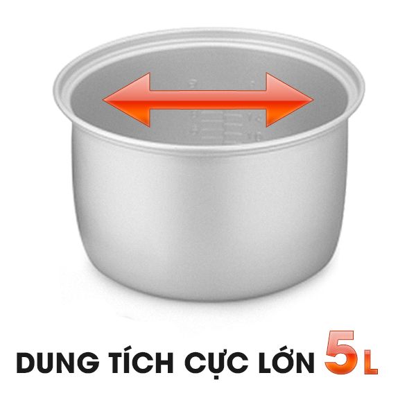 Nồi cơm điện có dung tích lên đến 5l cho phép bạn nấu cơm với số lượng cực lớn, phù hợp với các hộ kinh doanh ẩm thực, nhà hàng, khách sạn…