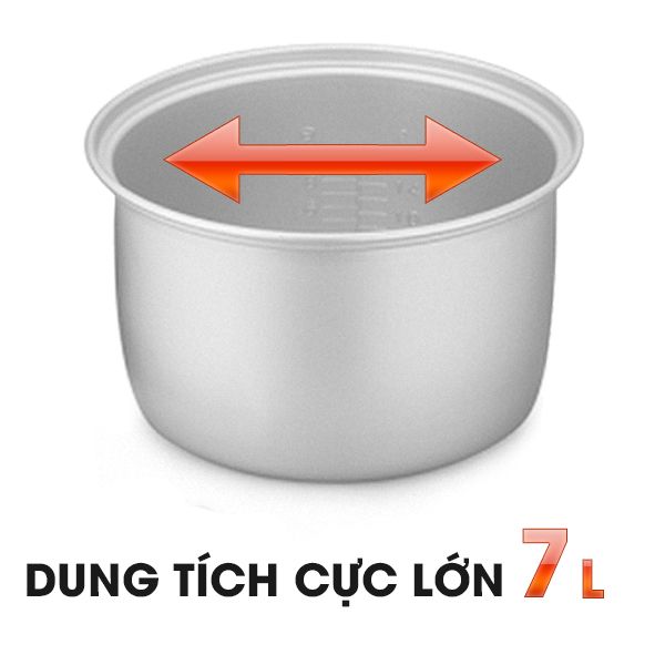 Nồi cơm điện Sharp D77V có dung tích lên đến 7l cho phép bạn nấu cơm với số lượng cực lớn, phù hợp với các hộ kinh doanh ẩm thực, nhà hàng, khách sạn…