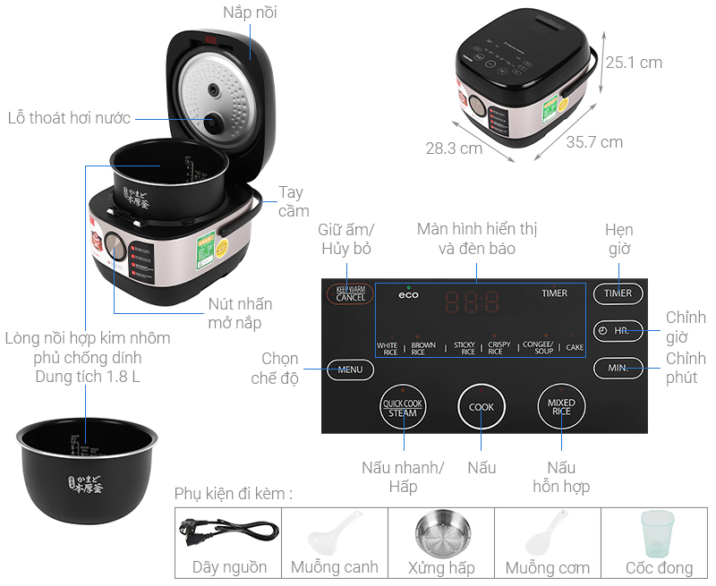 | Dung tích | 1.8 lít |