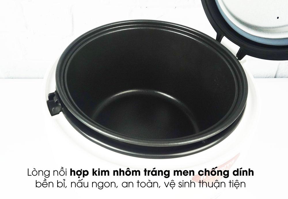 Đặc biệt, lòng nồi được làm bằng hợp kim nhôm tráng lớp chống dính cao cấp siêu bền, dễ chùi rửa và đảm bảo an toàn cho sức khỏe người dùng. Sản phẩm sử dụng cơ chế gia nhiệt 4 chiều với lớp bông thủy tinh giữ nhiệt có tác dụng làm nhiệt lượng tỏa đều và giữ lâu hơn để cơm luôn thơm ngon, nóng hổi.