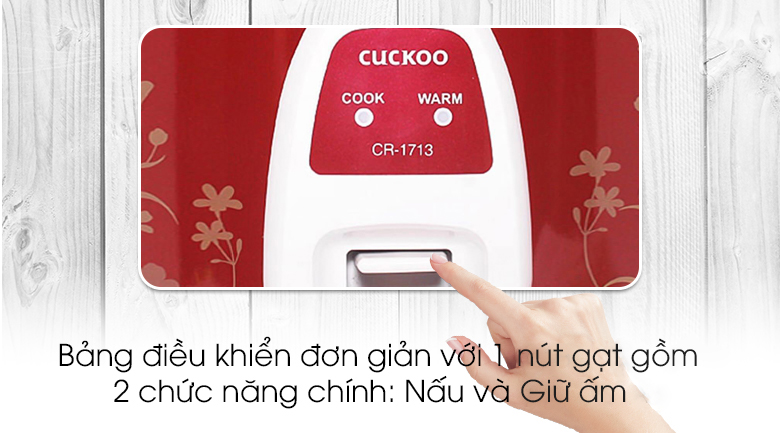 Nồi cơm điện nắp gài thiết kế 2 chức năng nấu và hâm nóng, điều khiển bằng nút gạt cơ, có đèn hiển thị dễ quan sát, sử dụng, phù hợp nhiều lứa tuổi.