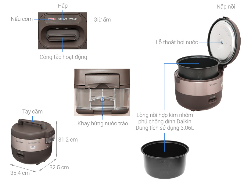 | Chức năng | Nấu cơm, Hấp, Giữ ấm |