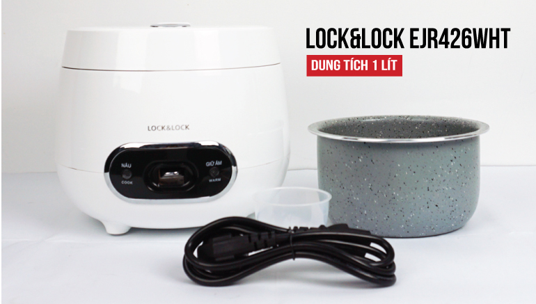 Nồi cơm điện Lock&Lock EJR426WHT được thiết kế gọn nhẹ, đẹp mắt, màu trắng trang nhã với dung tích 1 lít, phù hợp cho gia đình có từ 1-2 người ăn