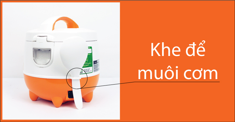 Có khe để muôi cơm tiện lợi