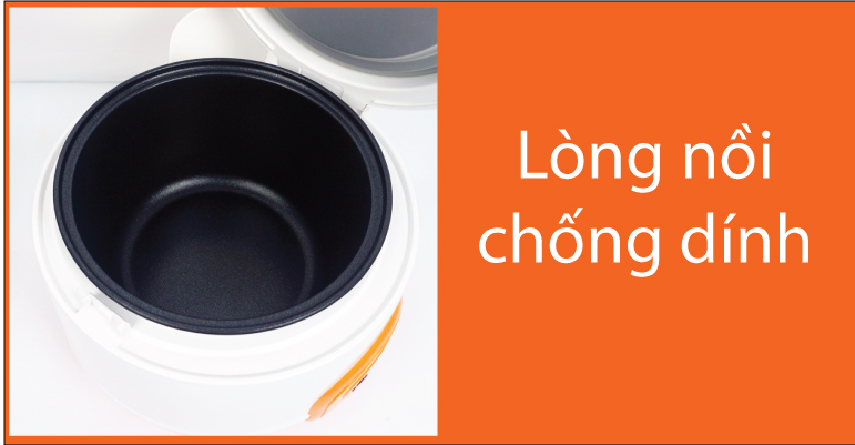 Lòng nồi dung tích 0.6 lít được làm bằng chất liệu hợp kim siêu cứng, được phủ men chống dính an toàn khi sử dụng