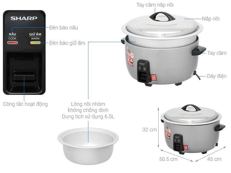 | Dung tích | 6.5 lít, Số người ăn 8 - 15 người |