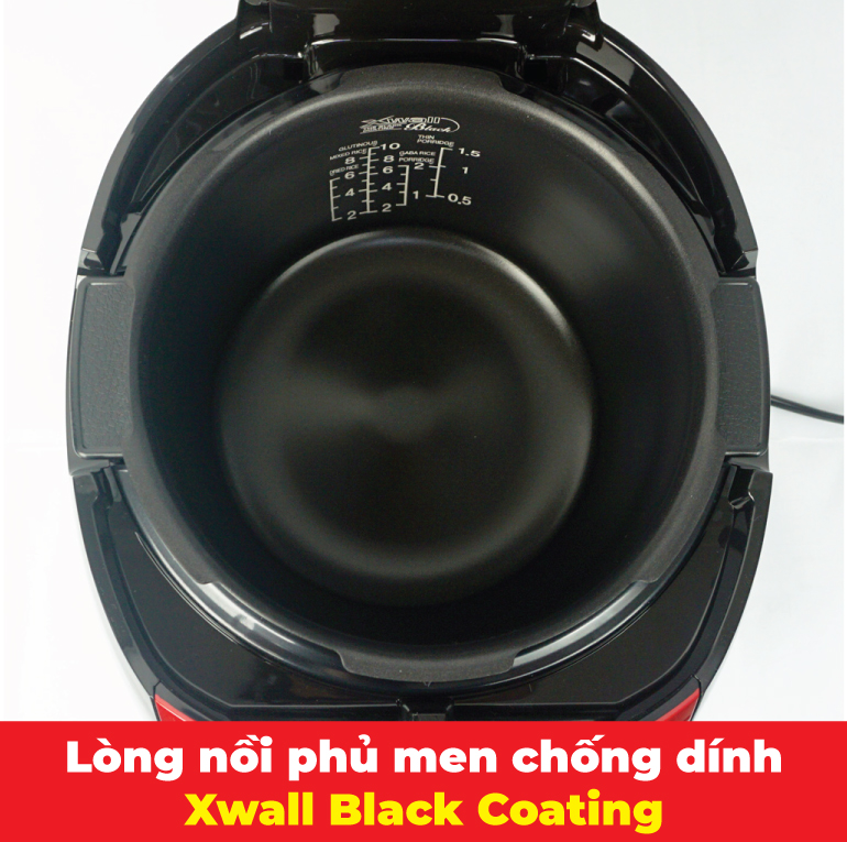 1. Lòng nồi được phủ men Xwall Black Coating chống dính có độ bền cao, an toàn cho người sử dụng. Lòng nồi có độ dày 3.3mm giúp nấu cơm ngon, giữ ấm tốt. Có tay cầm 2 bên cách nhiệt.