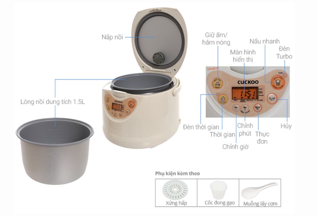 Nồi cơm điện Cuckoo 1.5L CR-0821FI có thiết kế nhỏ gọn, mang lại nhiều tiện ích cho người dùng, giúp người nội trợ tiết kiệm được nhiều thời gian, an toàn khi sử dụng và phù hợp với mọi gia đình.