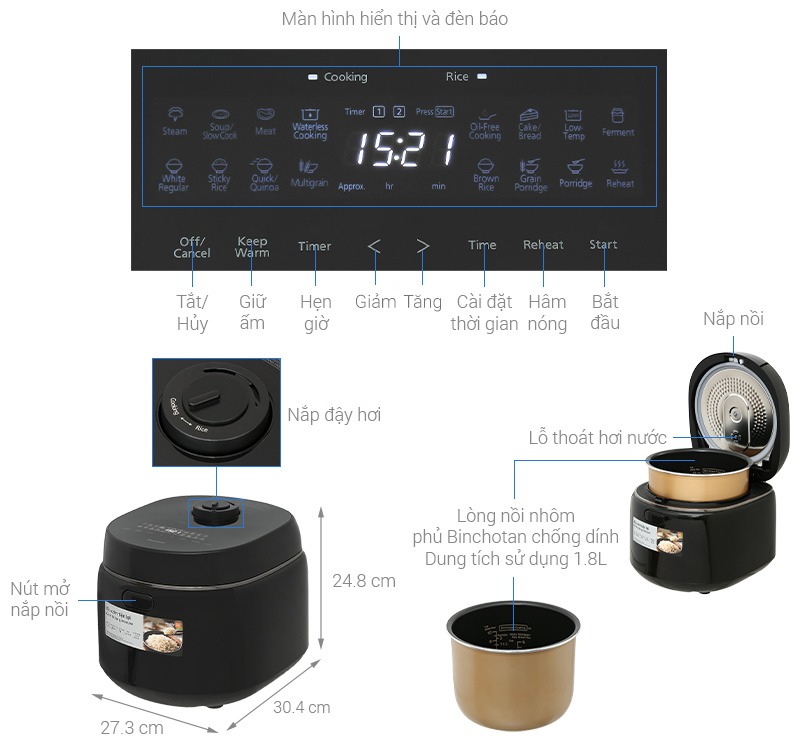 | Giữ ấm 12 giờ | Điều chỉnh thời gian nấu |