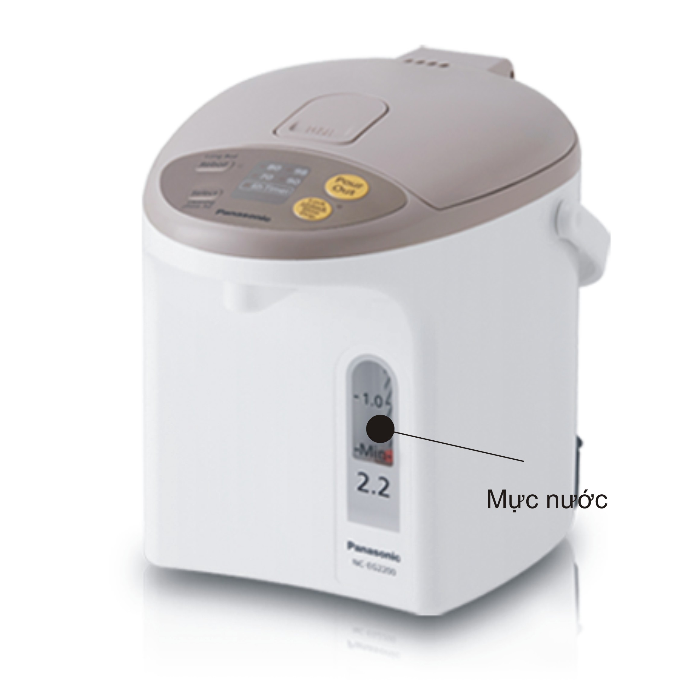 Bình thủy điện Panasonic NC-EG2200CSY trang bị nút rót nước trên bảng điều khiển. Chỉ cần nhấn nút, nước sẽ chảy ra vòi, đảm bảo an toàn cho người sử dụng, không lo bỏng.