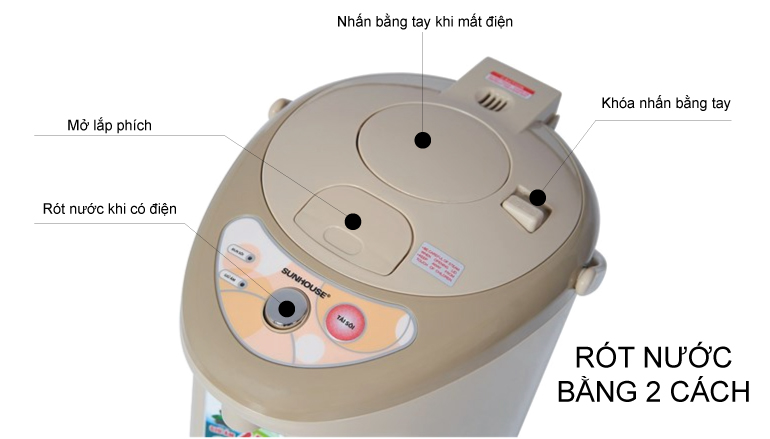 Bình thủy điện Sunhouse mang đến nhiều tiện ích cho ngôi nhà của bạn, bạn và gia đình luôn luôn có nước nóng hàng ngày để sử dụng với khả năng đun sôi nhanh và giữ nóng ở nhiệt độ 90 độ C suốt 24 giờ. Khi hết nước bạn chỉ việc đổ thêm nước, phích điện Sunhouse sẽ tự động đun sôi