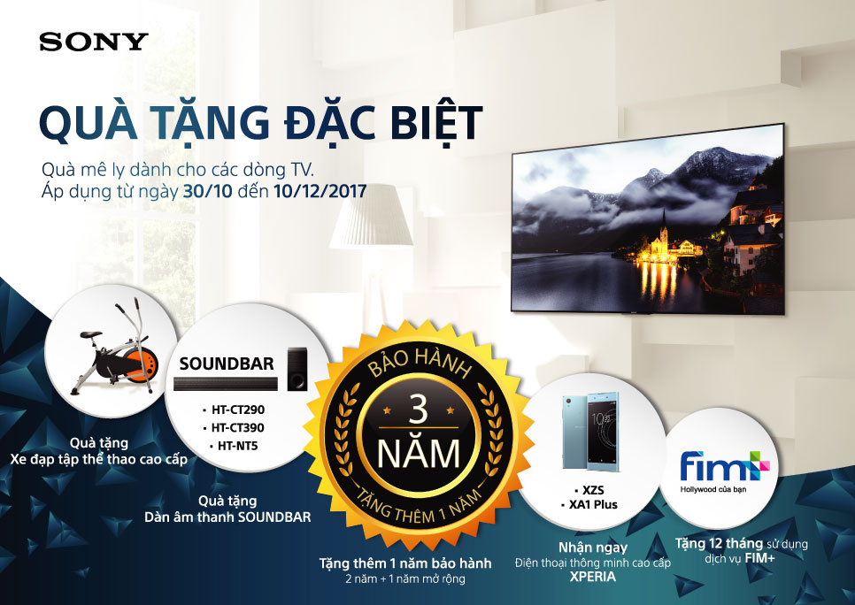 Quà tặng đặc biệt cho các dòng ti vi sony áp dụng từ 30/10 đến 10/12/2017
