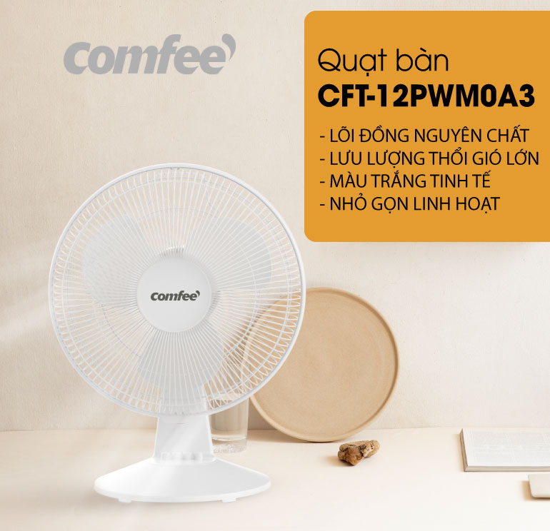 Quạt bàn Comfee CFT-12PWM0A3 là sự lựa chọn lý tưởng cho không gian sống và làm việc của bạn, mang lại sự thoáng mát và thoải mái suốt cả ngày dài. Với thiết kế tinh tế và hiện đại, sản phẩm không chỉ đáp ứng nhu cầu làm mát mà còn góp phần trang trí cho không gian của bạn.