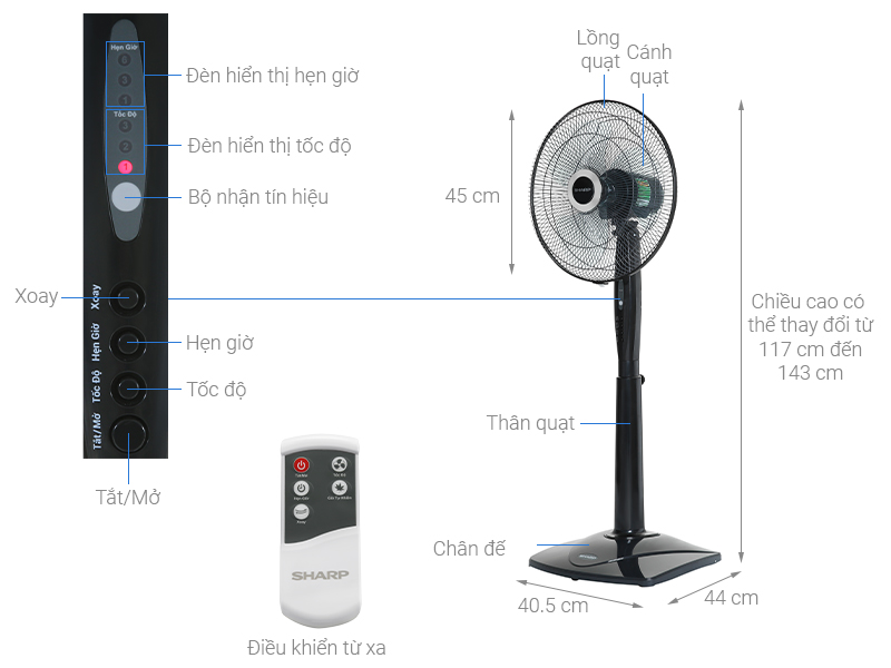 Quạt cây Sharp được thiết kế sang trọng - hiện đại, làm từ chất liệu nhựa cao cấp, khá chắc chắn, cho độ bền cao, ít bắt bụi, dễ dàng vệ sinh. Có thể điều chỉnh được độ cao theo ý muốn