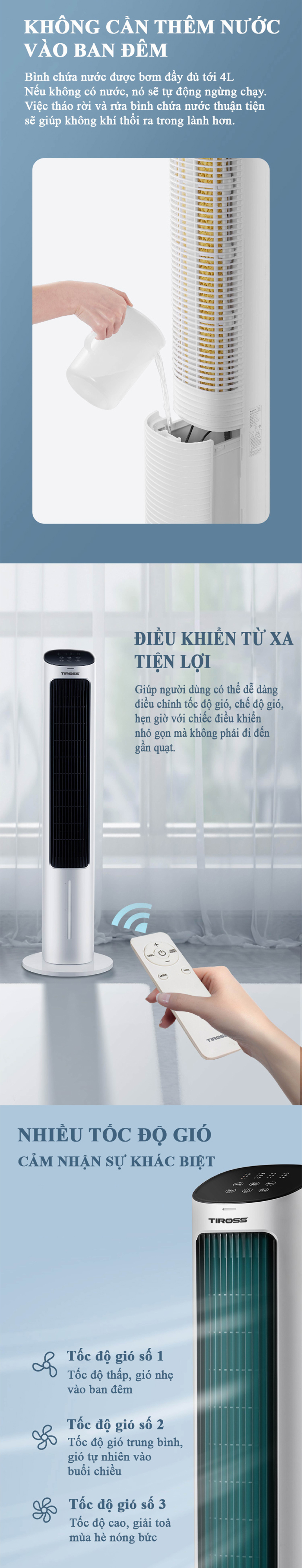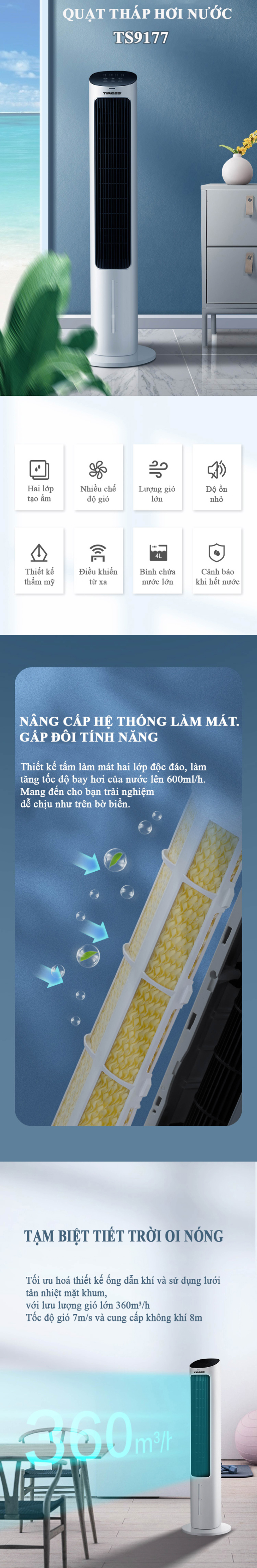 Thông tin: Quạt tháp hơi nước Tiross TS9177