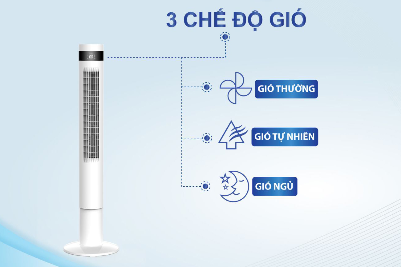 Với công suất chỉ 50W nhưng lượng gió ra rất mạnh, cửa thổi gió cũng rộng giúp luồng gió ra đều và nhiều hơn. Bên cạnh đó tốc độ mạnh của gió có thể dể dàng tùy chỉnh với 3 mức gió từ mức 1 tới mức 3 tiện lợi với nút ấn + và – phía trên cùng của quạt