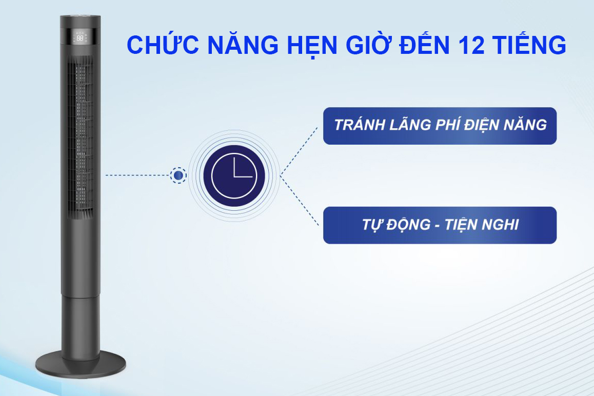 Chức năng hẹn giờ giúp bạn thực hiện điều đó một cách tự động mà không làm ảnh hưởng đến giấc ngủ. Hẹn giờ từ 2-4-6-8 đến 12 tiếng.