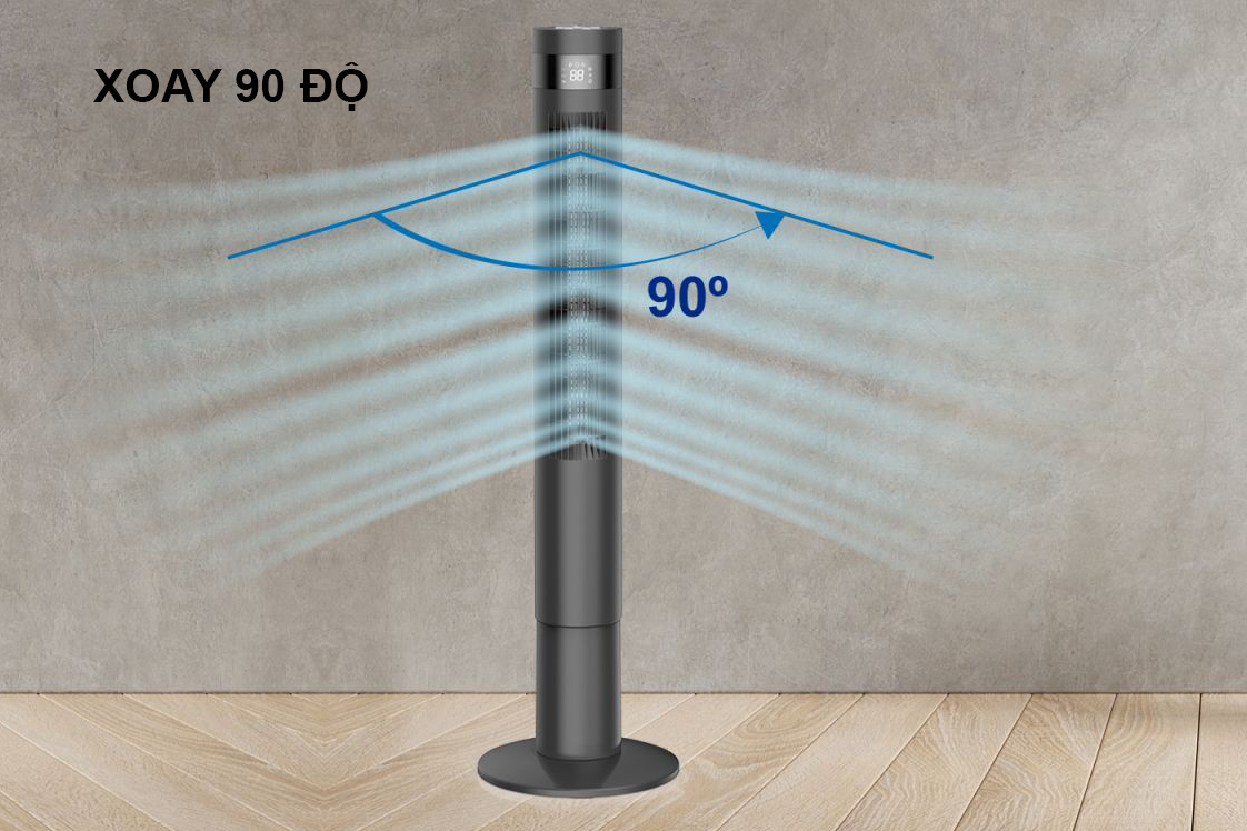 Chế độ xoay đến 90 độ giúp cả không gian nhà bạn có thể đón được làn gió tươi mát mà không phải di chuyển chiếc quạt đi nhiều nơi. Thiết kế này phù hợp với bàn tròn, hay ngồi ở sofa...