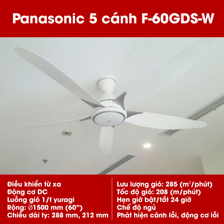 Thông tin: Quạt trần Panasonic 5 cánh F-60GDS-W, có khiển