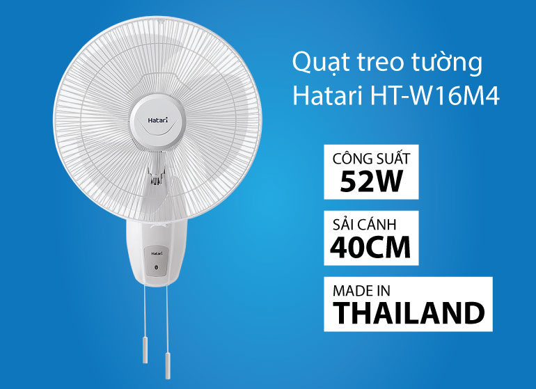 - Quạt treo tường Hatari HTW16M6 được thiết kế nhỏ gọn, màu sắc tươi sáng sẽ tạo nên sự sang trọng cho căn nhà của bạn.