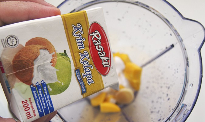 Xoài gọt vỏ, cắt miếng nhỏ cho vào cối xay