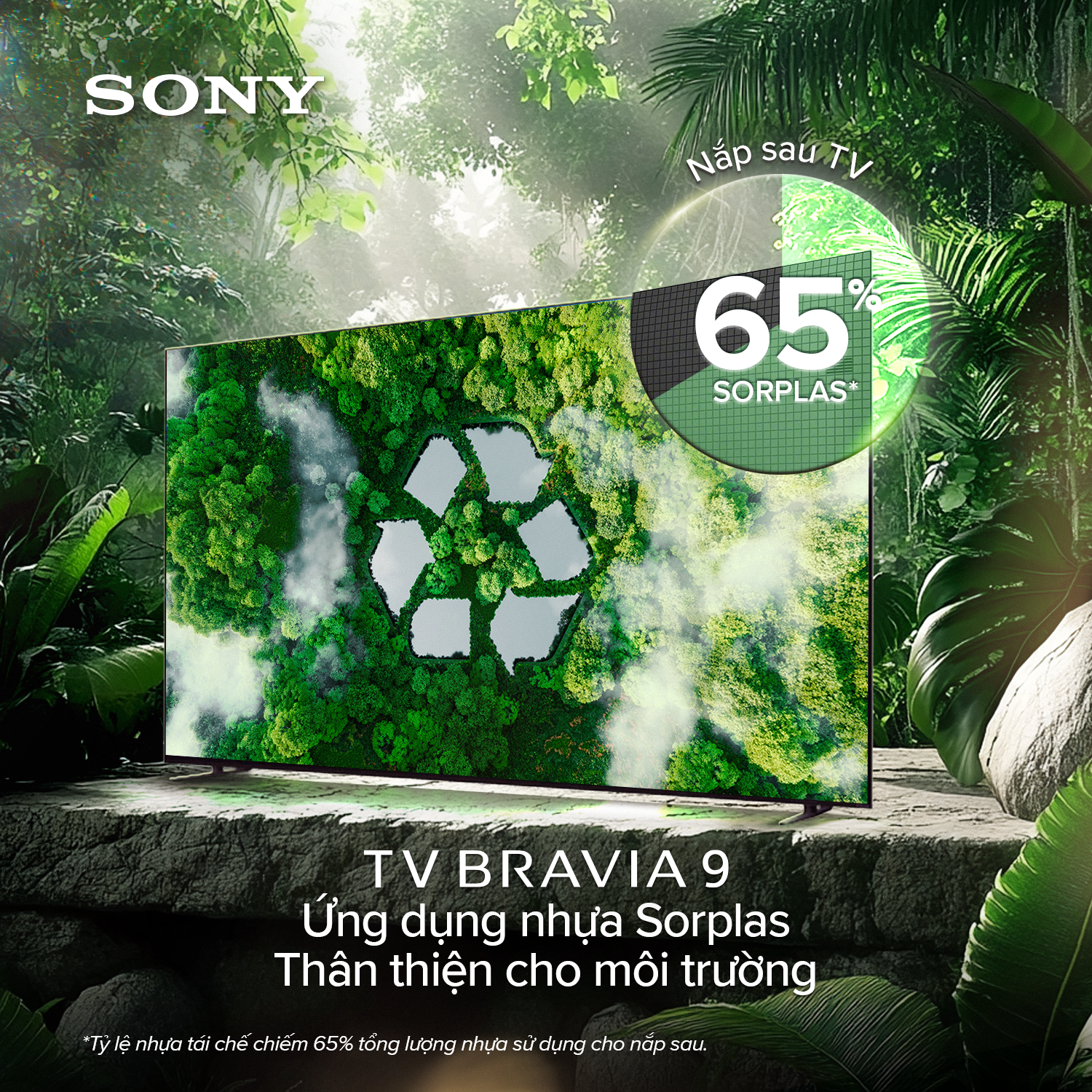 SORPLAS (Sustainable Oriented Recycled Plastic) là loại nhựa tái chế độc quyền của Sony, được phát triển để tái sử dụng nhựa từ các sản phẩm điện tử đã qua sử dụng, như vỏ TV cũ. BRAVIA 9 tích hợp khoảng 65% nhựa SORPLAS vào các bộ phận, đặc biệt là vỏ sau, giúp giảm đáng kể lượng nhựa nguyên sinh và rác thải nhựa.