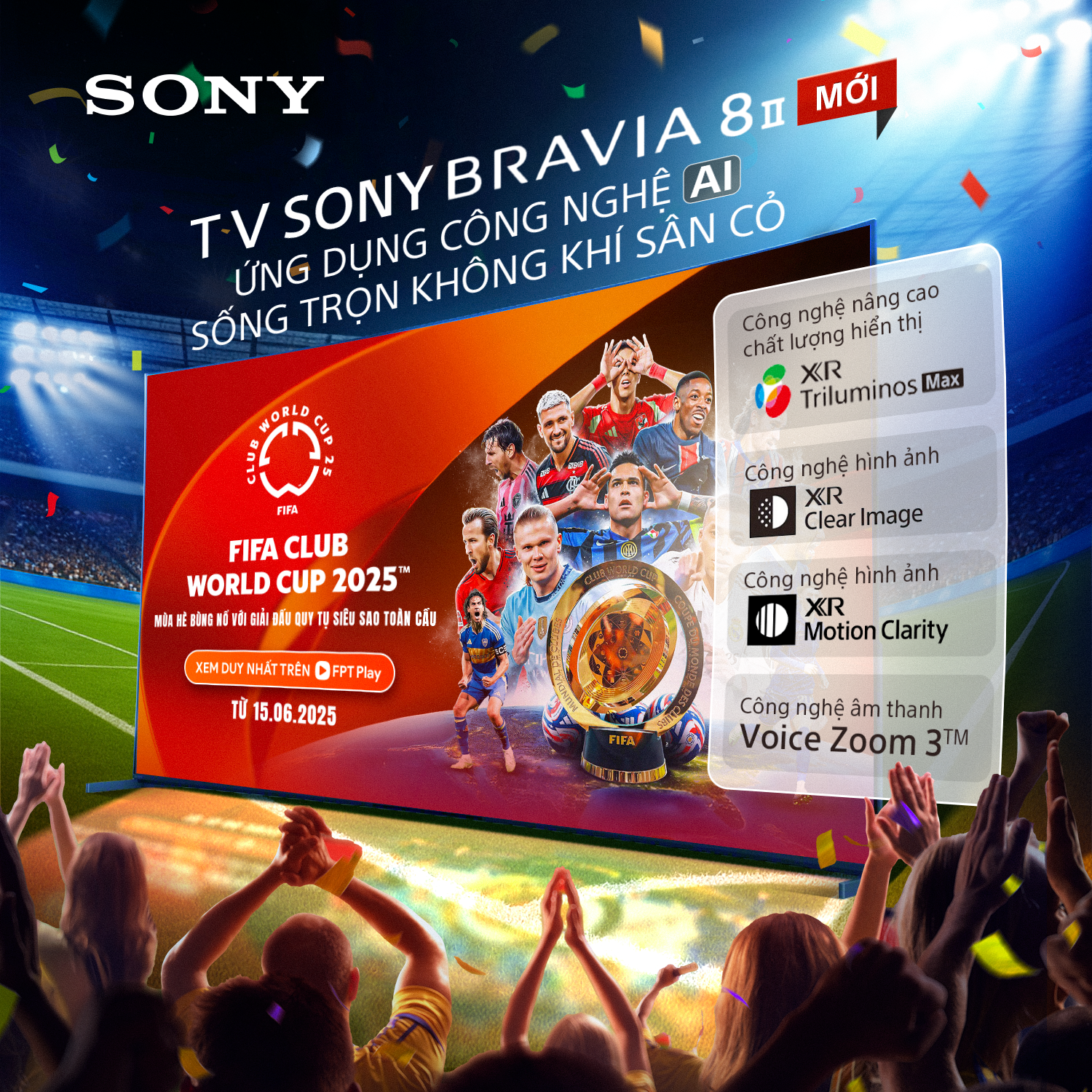 Chỉ xem bóng đá thôi là chưa đủ – fan chân chính cần sống trong từng trận cầu để cảm xúc thực sự bùng nổ! Với TV Sony BRAVIA 8 II, sản phẩm mới nhất thuộc dòng Sony BRAVIA 2025, bạn sẽ hòa mình vào không khí kịch tính của FIFA Club World Cup 2025 như đang ngồi giữa khán đài. Nhờ ứng dụng công nghệ AI tiên tiến, BRAVIA 8 II mang đến trải nghiệm hình ảnh và âm thanh vượt trội, giúp bạn không bỏ lỡ bất kỳ khoảnh khắc nào của đội bóng yêu thích.