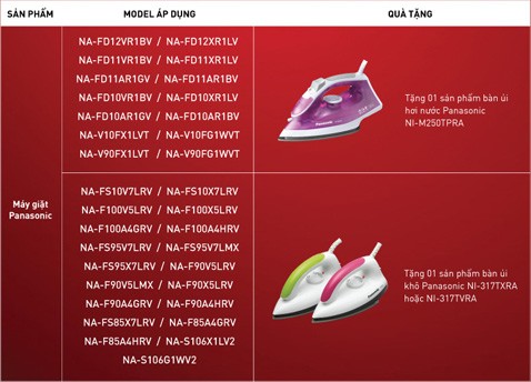 Khi mua 1 tủ lạnh hoặc máy giặt Panasonic bất kỳ trong danh mục sản phẩm khuyến mại, khách hàng sẽ được nhận ngay hàng ngàn quà tặng từ Panasonic. Chương trình được áp dụng tại các siêu thị điện máy trên cả nước.