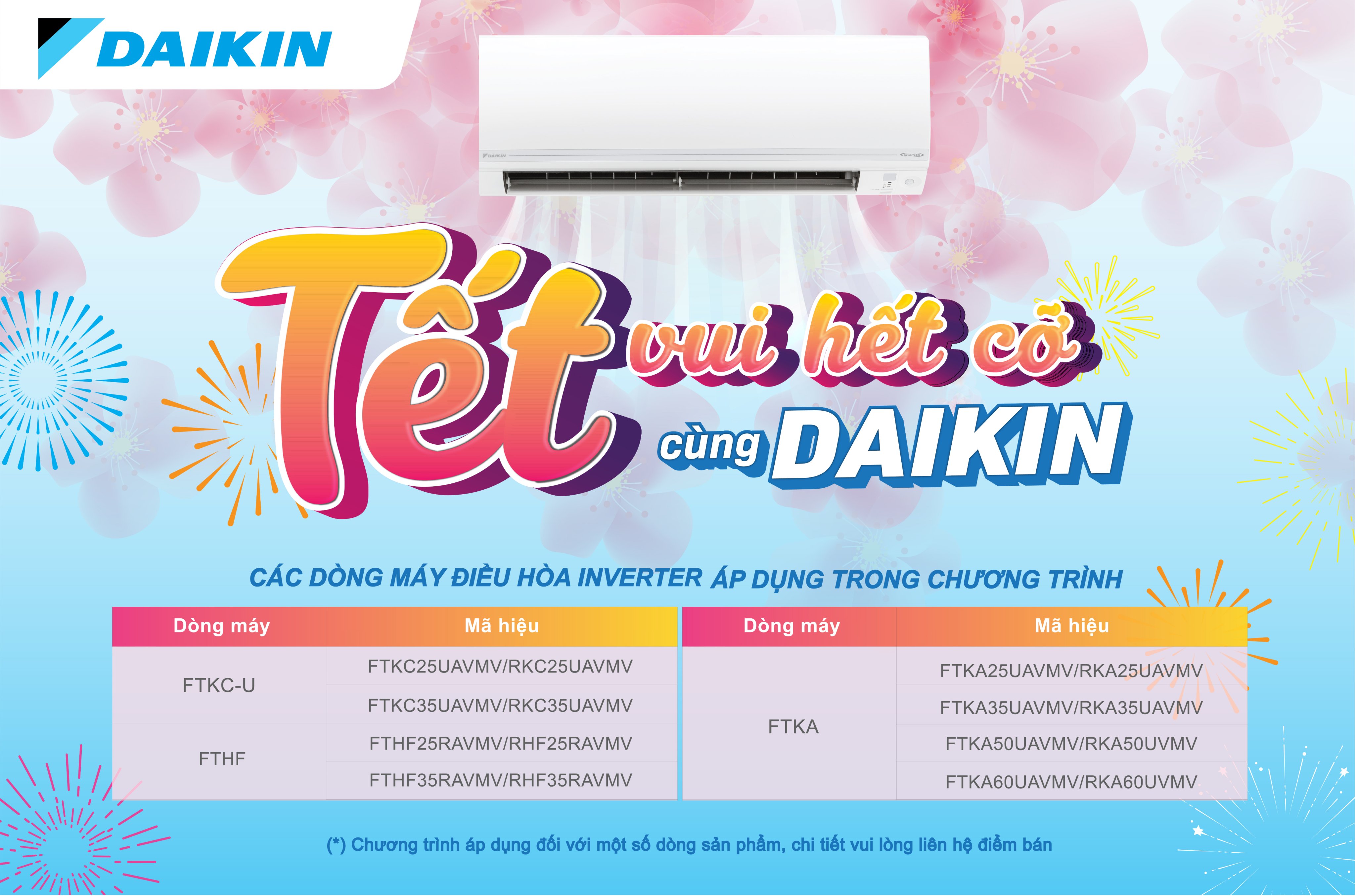 Nhằm tri ân tới khách hàng trong thời gian qua đã luôn đồng hành và ủng hộ. Daikin việt nam cùng Điện Máy Ánh Chinh tổ chức chương trình khuyến mại “TẾT VUI HẾT CỠ CÙNG DAIKIN”