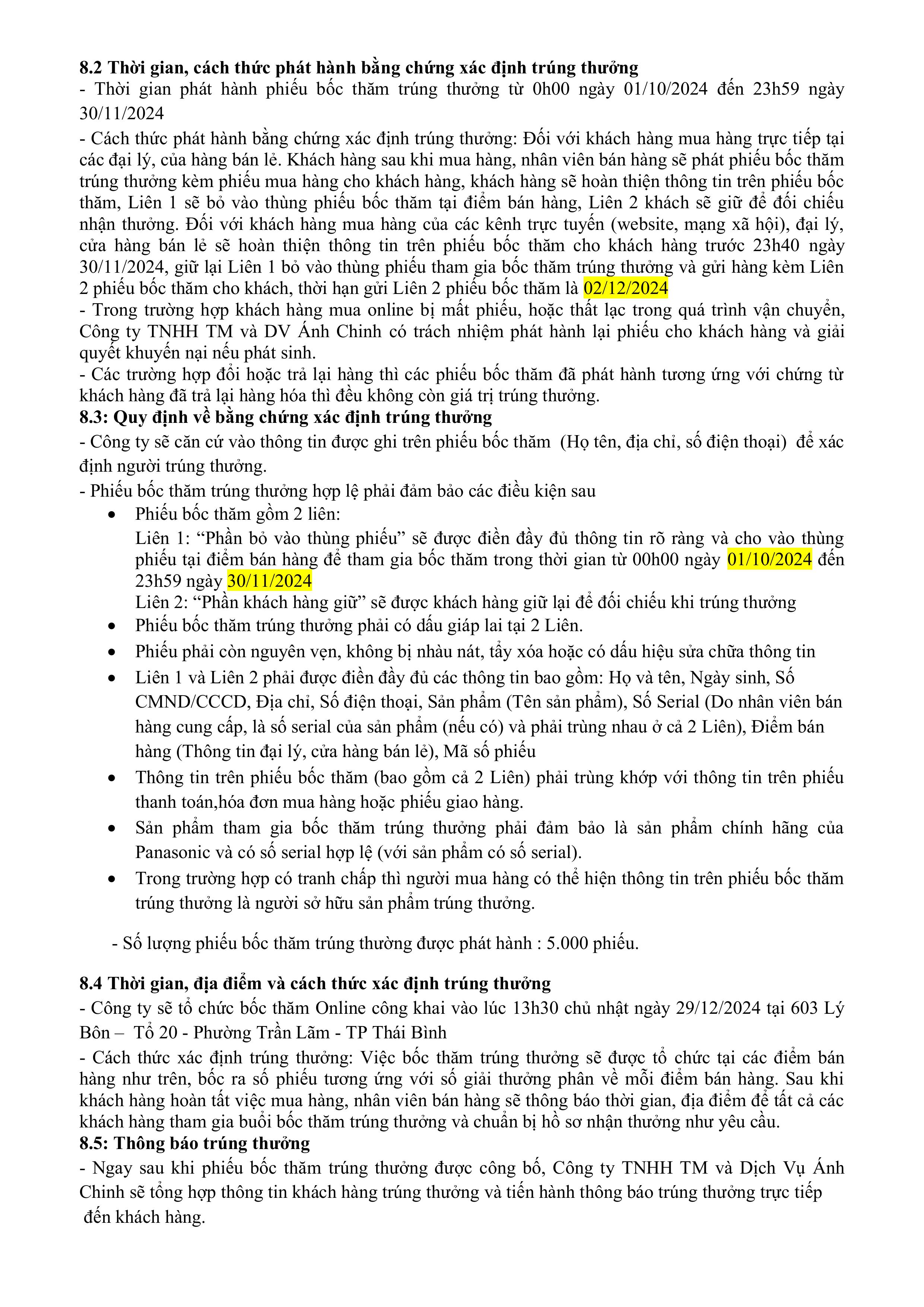 Thể lệ chương trình bốc thăm trúng thưởng Panasonic - QUAY SỐ VÀNG, CUỘC SỐNG THÊM SANG