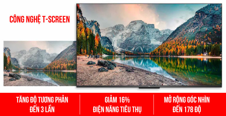 Công nghệ T-SCREEN giúp tăng cường độ tương phản đến 3 lần, giảm 16% năng lượng tiêu thụ và mở rộng góc nhìn lên đến 178 độ