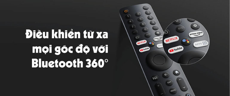 Tính năng điều khiển bằng giọng nói: Chỉ bằng giọng nói, bạn có thể trực tiếp điều khiển ứng dụng, tìm phim, phát trực tuyến ứng dụng, phát nhạc,… một cách nhanh chóng và thuận tiện. Hay thậm chí nhận câu trả lời, điều khiển các thiết bị nhà thông minh chỉ với câu lệnh "Ok Google" hoặc nhấn nút Trợ lý Google trên điều khiển. Xiaomi 55A Pro điều khiển từ xa mọi góc độ với Bluetooth 360° thông qua điều khiển từ xa, người dùng có thể thực hiện mọi thao trong phạm vi 10m, dễ dàng kiểm soát hơn ở mọi hướng không điểm chết. Các nút ấn cho phép người dùng truy cập ngay lập tức vào những nội dung yêu thích của mình.