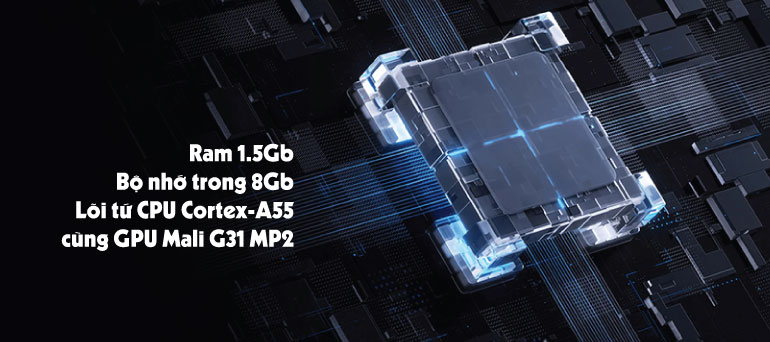Dưới sự hỗ trợ của CPU Cortex-A55 lõi tứ cùng GPU Mali G31 MP2 giúp Xiaomi 43A có một hiệu năng cực đỉnh và thuật toán linh hoạt. Ngoài ra, với bộ nhớ 8GB và Ram 1.5GB, người dùng có thể thoải mái lưu trữ và tải xuống những ứng dụng yêu thích mà không lo vấn đề giật hay lặng, mang đến cho bạn những phút giây thư giãn hoàn hảo nhất.