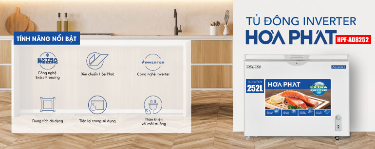 HPF-AD8252 sử dụng công nghệ Inverter có khả năng tiết kiệm điện năng vượt trội, tiết kiệm chỉ từ 2000đ/ngày, hoạt động ổn đinh, êm ái. Ngoài ra, tủ đông Hòa Phát sử dụng gas R600a cho khả năng làm lạnh nhanh, thân thiện với môi trường