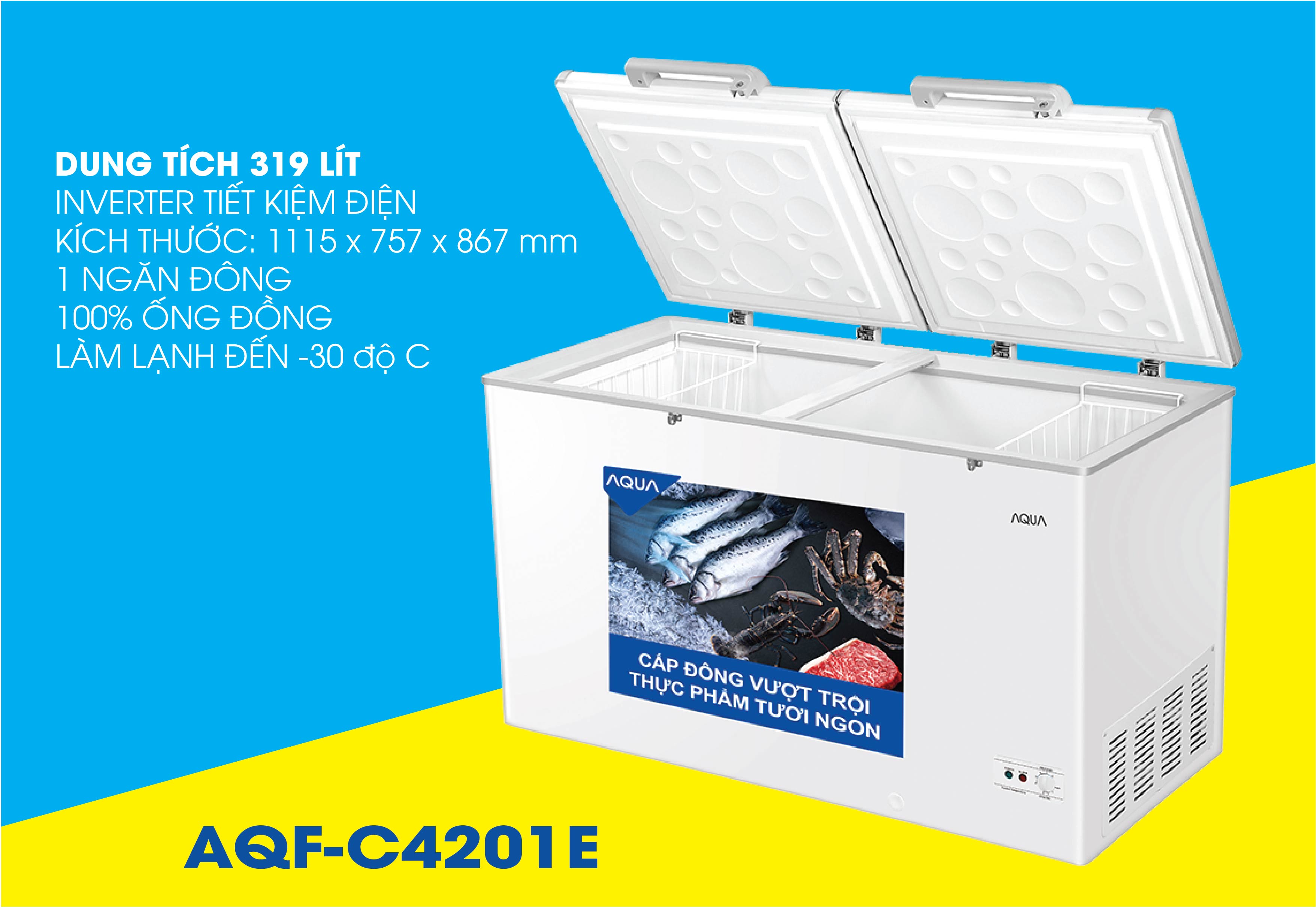 Tủ bảo quản Aqua inverter 319 lít AQF-C4201E, 1 ngăn đông, dàn đồng