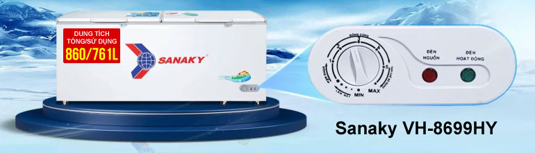 Tủ đông Sanaky VH-8699HY có dung tích tổng 860 lít, gồm 1 ngăn đông 2 cánh, thích hợp sử dụng nhà hàng, cửa hàng bách hóa,...