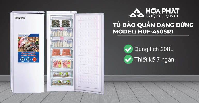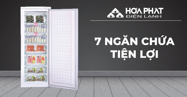 Hòa Phát tủ đứng HUF-450SR1 với thiết kế 7 ngăn riêng biệt, tiện dụng, linh hoạt giúp bạn đễ dàng phân loại thực phẩm khác nhau để không bị lẫn mùi. Ngăn đựng thực phẩm được làm bằng nhựa cao cấp, chịu lực, có độ bền cao.