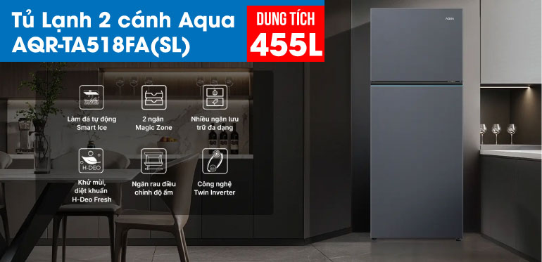 | Dung tích tổng | 455 lít |