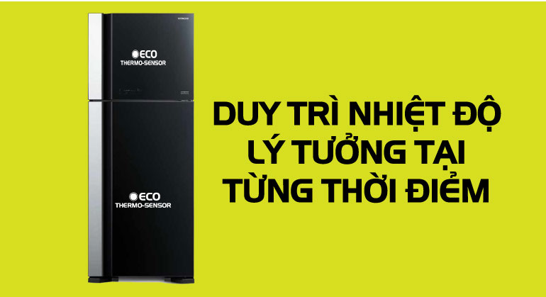 Tủ lạnh Hitachi có 2 loại cảm biến nhiệt ECO sử dụng cho ngăn đá và ngăn lạnh. Cảm biến nhiệt ECO này nhận biết sự thay đôi nhiệt độ của từng ngăn để từ đó duy trì nhiệt độ lý tưởng tại mọi thời điểm.