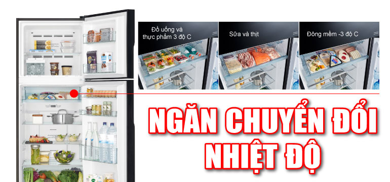 Ngăn chuyển đổi cho phép bạn chuyển đổi với 3 mức nhiệt sử dụng để lưu trữ đồ uống & thực phẩm, trữ lạnh, và đông mềm