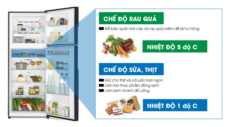 Nếu chỉ để rau củ quả trong tủ lạnh mà không có vật dụng bảo quản thì rất dễ bị khô héo, mất đi độ tươi ngon. Chiếc tủ lạnh hitachi 2 cánh này có thêm hai ngăn rau quả riêng biệt giúp duy trì độ tươi ngon và chất dinh dưỡng trong rau quả. Ngoài ra, ngăn rau quả còn có khả năng cung cấp thêm độ ẩm giúp cho rau, quả duy trì trạng thái tối ưu, độ tươi ngon và chất dinh dưỡng đến 7 ngày