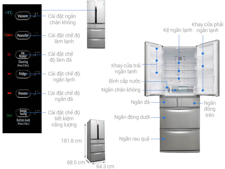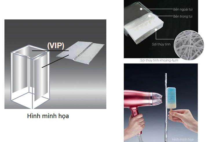 Tấm cách nhiệt chân không Vacuum Insulation Panel (VIP) có thể ngăn cách hoàn hảo nhiệt độ bên trong và bên ngoài tủ lạnh, giúp cho tủ có thể làm lạnh hiệu quả ở mức cao nhất, đồng thời tấm cách nhiệt này còn giúp lưu giữ độ lạnh cho ngăn đông lên đến 15 giờ đồng hồ sau khi mất điện, giúp bảo vệ thực phẩm được an toàn, tránh bị hư hỏng.